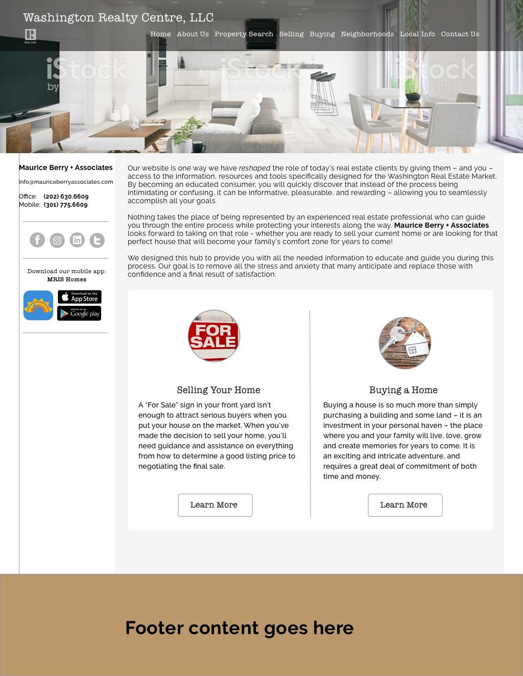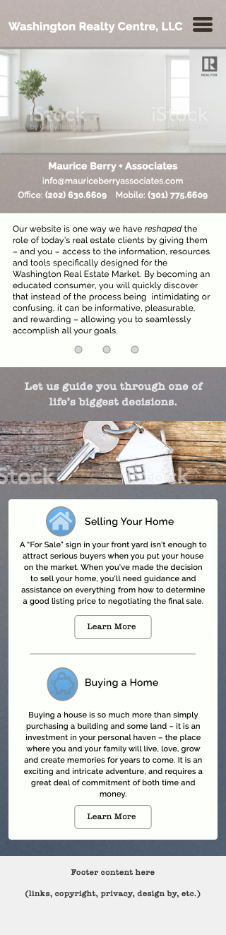 In 2019 I was hired by a realtor in Maryland / Washington, DC to redesign his website — Washington Realty Centre. Below represents steps taken to achieve a successful redesign and launch of the website. We met regularly to discuss the iterations face-to-face and on the phone, he provided his requirements and feedback with the iterations continuing until a final design was chosen. The website is fully responsive for desktop, tablet and mobile.